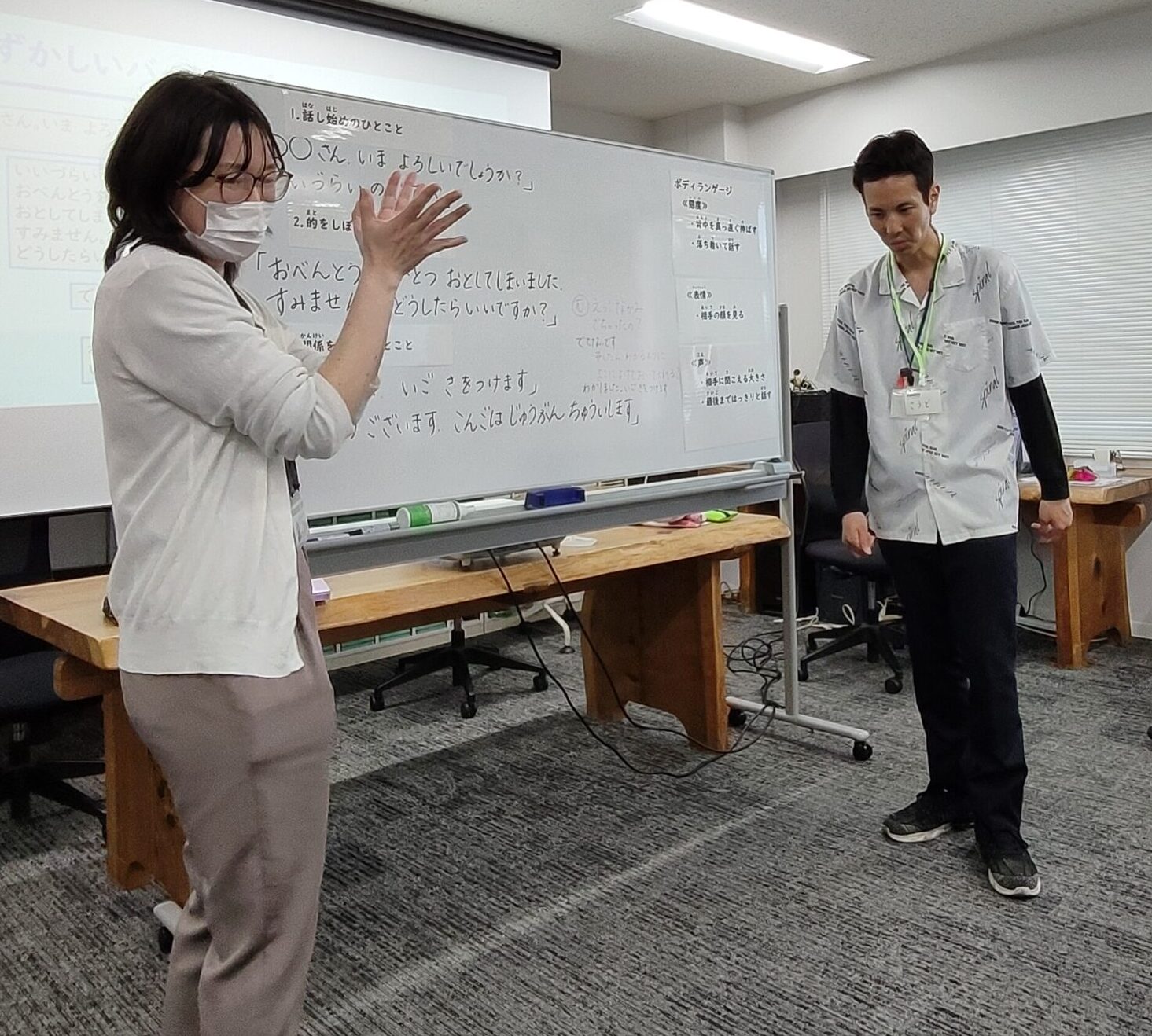 などなど、みんなで意見交換しながら、ロールプレイではみなさんさわやかキャラを意識して取り組むことができていました。